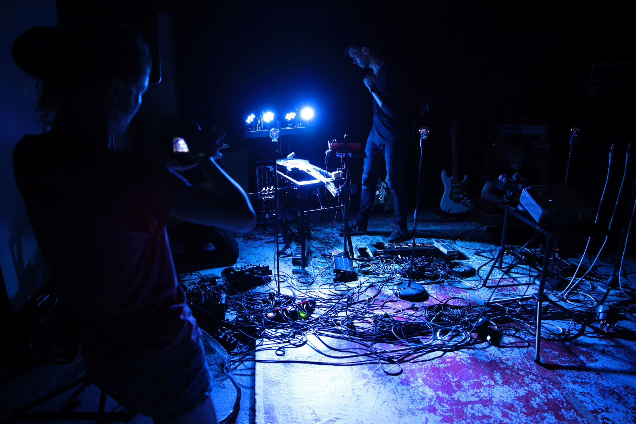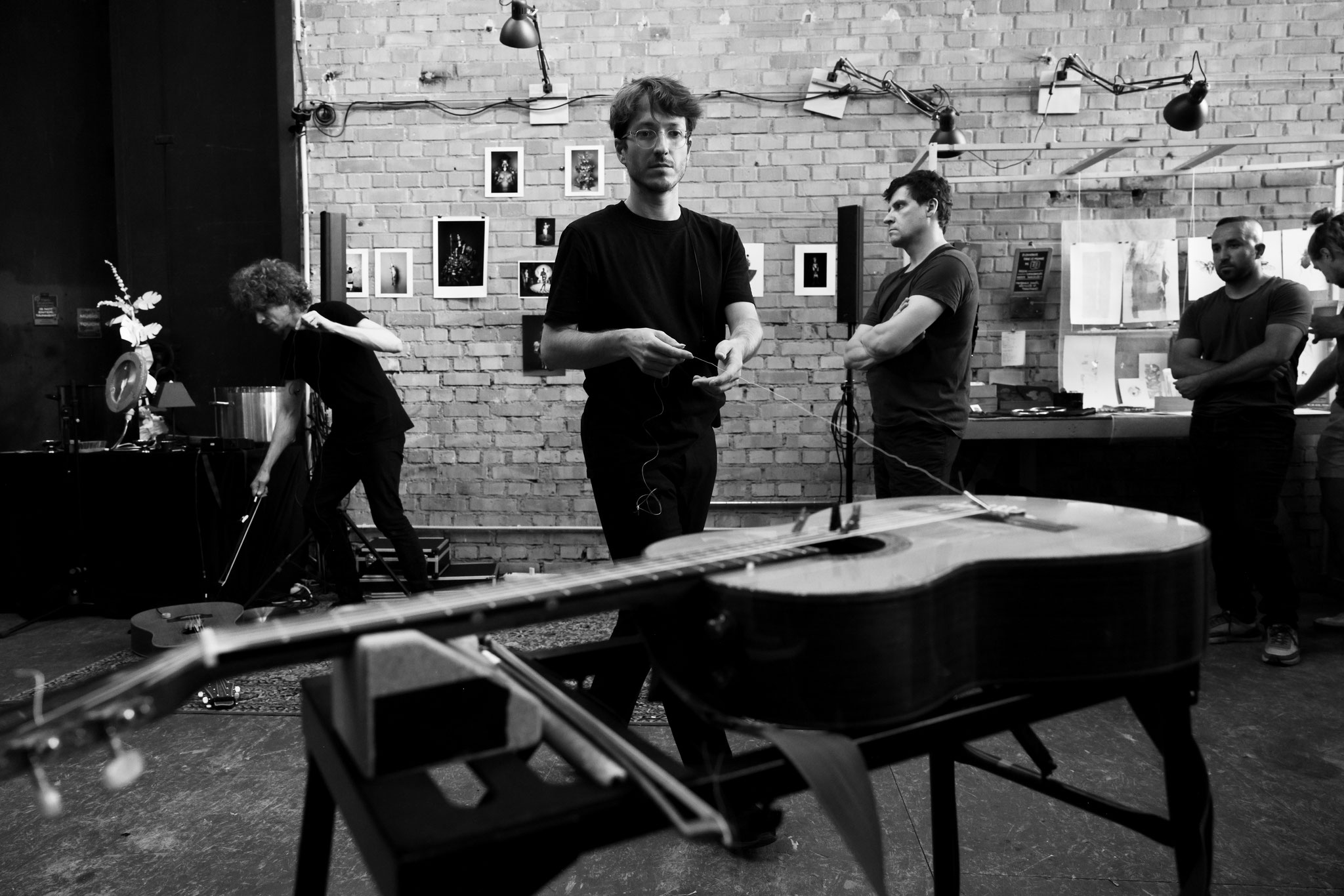 électronique. Les quatre guitaristes jouent leurs instruments avec des archets, des tournevis ou des pinces à linge et utilisent des pédales d'effet et des sons électroniques pour créer des